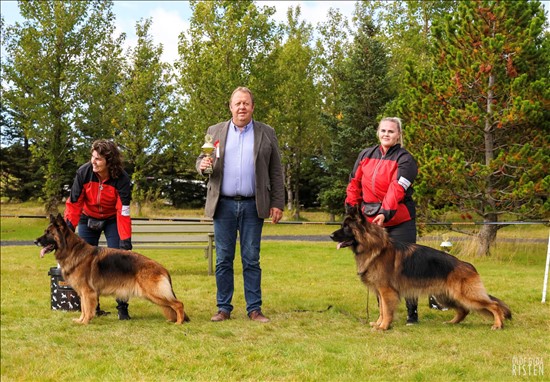 Draumur minn til margra ára rættist að eignast hund frá Ítalíu í fyrra. Svakalega flottir ræktendur og hundar á Ítalíu sem maður er búin að fylgjast með í mörg ár. Við keyptum hann Ibra og fór hann í þjálfun til David Grassi á Ítalíu, sem gerði frábæra hluti í þjálfun á Ibra. Erum svo þakklát að hafa fengið pláss hjá þjálfara eins og David sem veit upp á 10 hvað hann er að gera. Þjálfunin saman stóð af 5 prófum og kláraði Ibra þessi próf með frábærum árangri hjá David. WT- skapgerðarmat BH- hlýðinipróf AD- þolpróf hjólað 20 km Kkl- ræktunardómur/sýning/bitvinna IGP- bitvinna/ spor/ hlýðni Ibra kom til Noregs í apríl 2022 og þar tóku Øyvind og Nina við honum og þjálfuðu hann upp í að vera í sýningahringnum og var stórskotslegur árangur hjá þeim með hann. Einnig fengu við til liðs við okkur margfaldan heimsmeistara í IPO/IGP keppni hann Ingar Andersen til að þjálfa Ibra í bitvinnu fyrir sýninguna í júlí. Þúsund þakkir fyrir alla hjálpina með Ibra. Ibra fór á sína fyrstu sýningu sem var með SV reglum frá þýskalandi í júlí á Nordic winner hjá Norska schaferhunda klúbbnum. SV reglur fyrir hundi í vinnuhundaflokki saman stendur af 4 þáttum. Sýning Skotprófi Hlaupa laus við hæl Bitvinnu. Stóð Ibra sig frábærlega og varð hann í 7. sæti -V4. í mjög sterkum flokki. Ibra fékk flottan haldler frá Þýskalandi Mosaab F. Átti Ibra með þeim betri bitvinnu próf af þeim 23 hundum sem voru í flokknum, en það náðu bara 16 hundar bitvinnuprófinu. Erum svo stolt af þessum gaur og hann bræðir alla sem hitta hann. Það sem okkur hlakkar til að fá hann heim til Íslands og erum hrikalega stolt af honum. Hér koma nokkrar myndir frá sýningunni.
